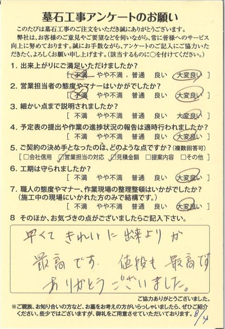 日立市N様、共同墓地にて和型から洋型にリフォームしました。