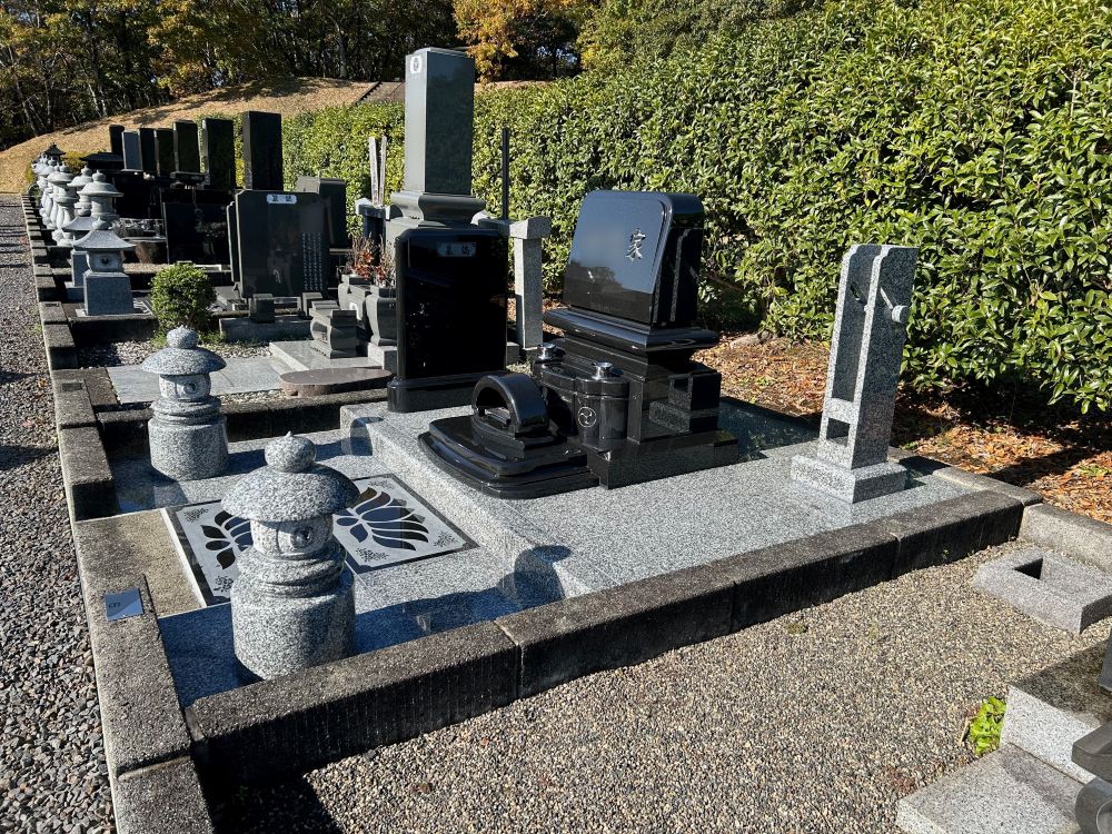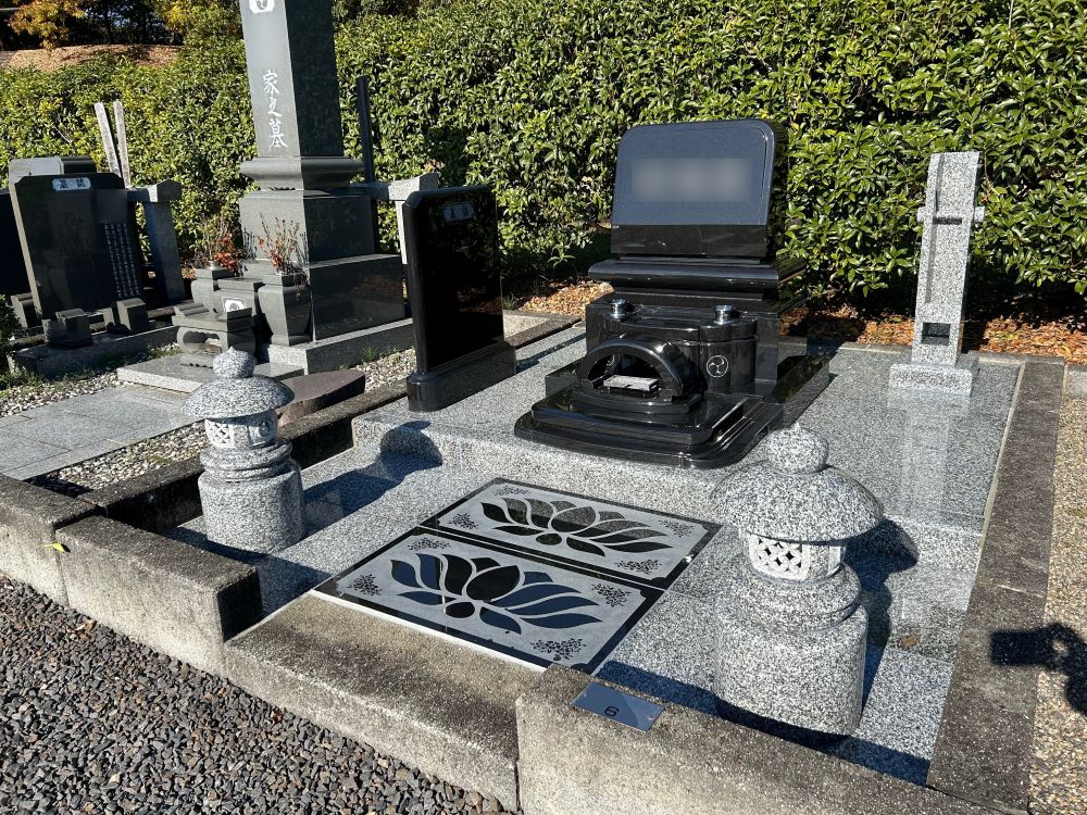 市営霊園規格墓所に、石材を2色使用して洋型のお墓を建墓しました。