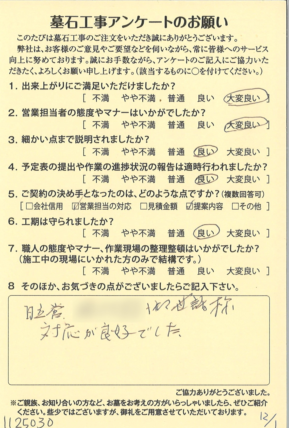 ・営業担当者の態度やマナーはいかがでしたか? 【大変よい】