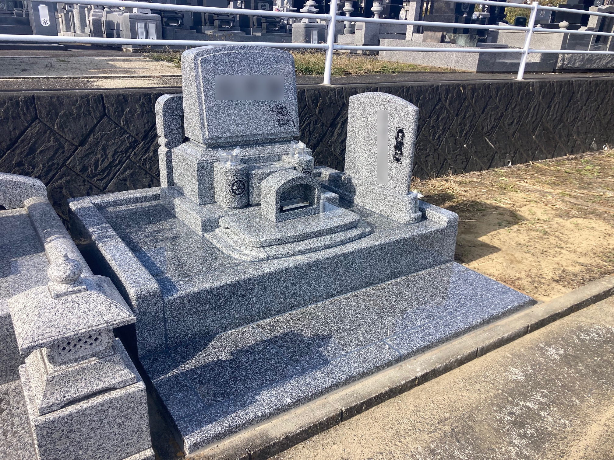 ●4㎡ ●お手入れがしやすいシンプルなデザイン ●お参りのしやすい立拝タイプ ●お花の彫刻