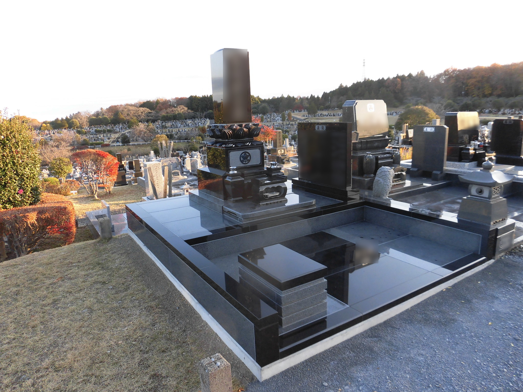 ●浜見台霊園 ●8.0㎡ ●和型 ●石種:インド黒/654長泰細目 ●外柵や物置台にも拘りのあるデザイン