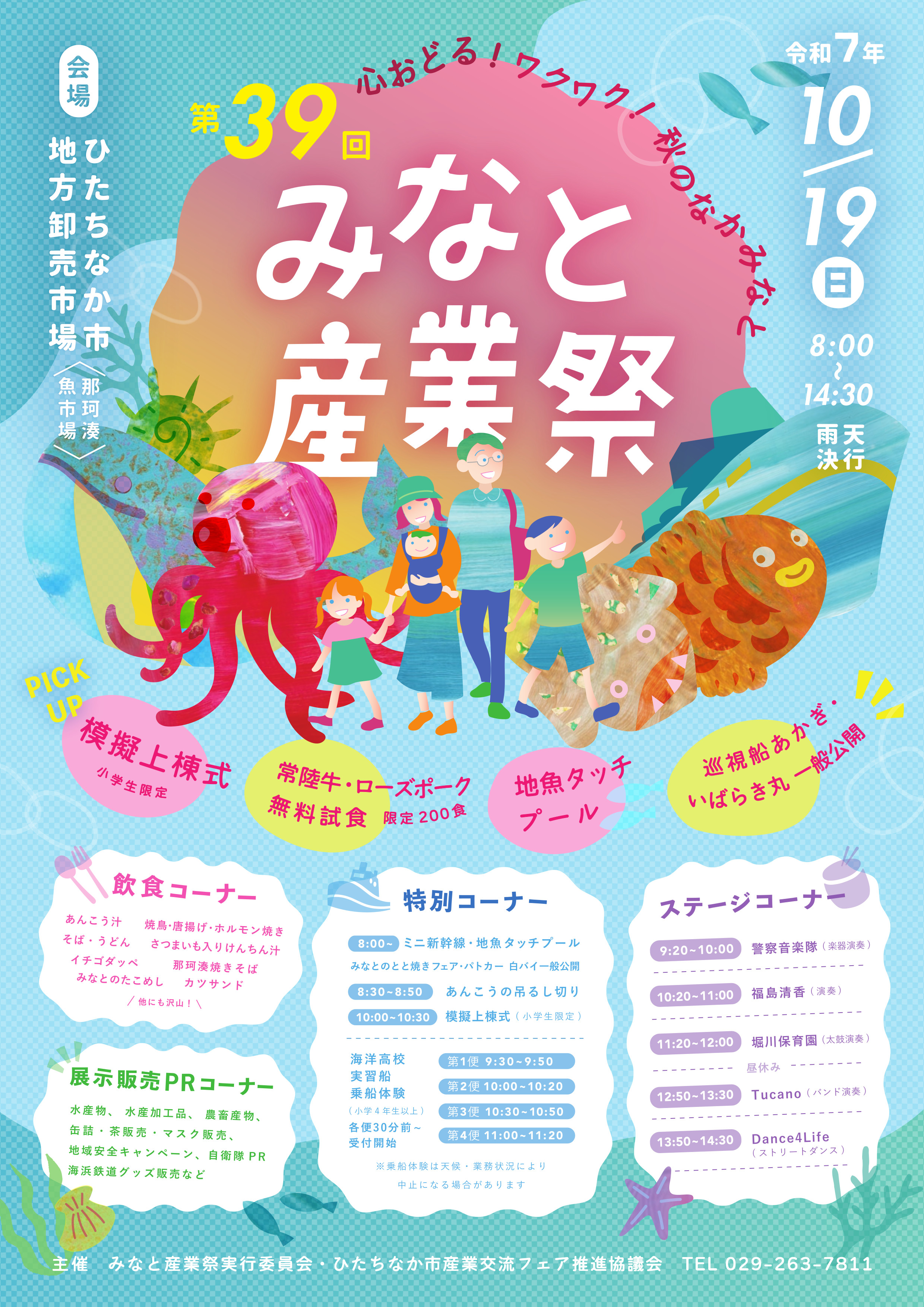 第39回みなと産業祭開催 2025年10月11日水戸東展示場 ひたちなか市地方卸売市場『那珂湊魚市場』のイベントです! 今年は秋の味覚サンマが豊漁ですね♪ 生魚だけでなく加工品もたくさん陳列されています。 周辺のお店では那珂湊グルメも楽しめます。