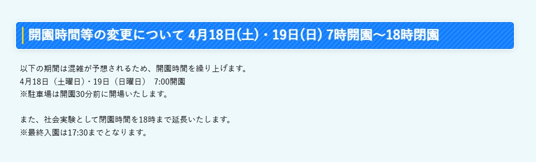 更に今週末は、通常9時30分~17時までの開園時間が延長されます