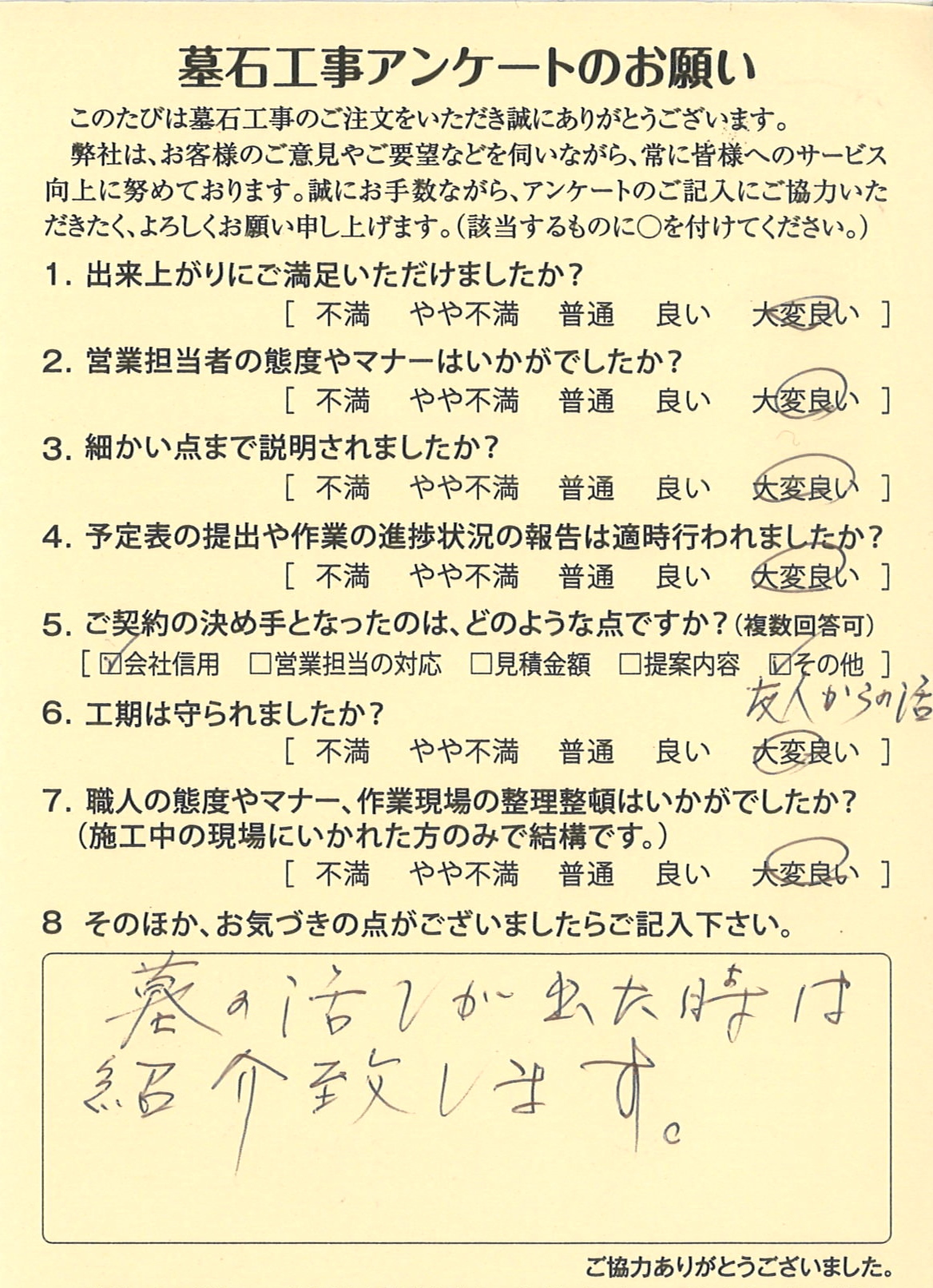 水戸市O様からのアンケートをご紹介させて頂きます。