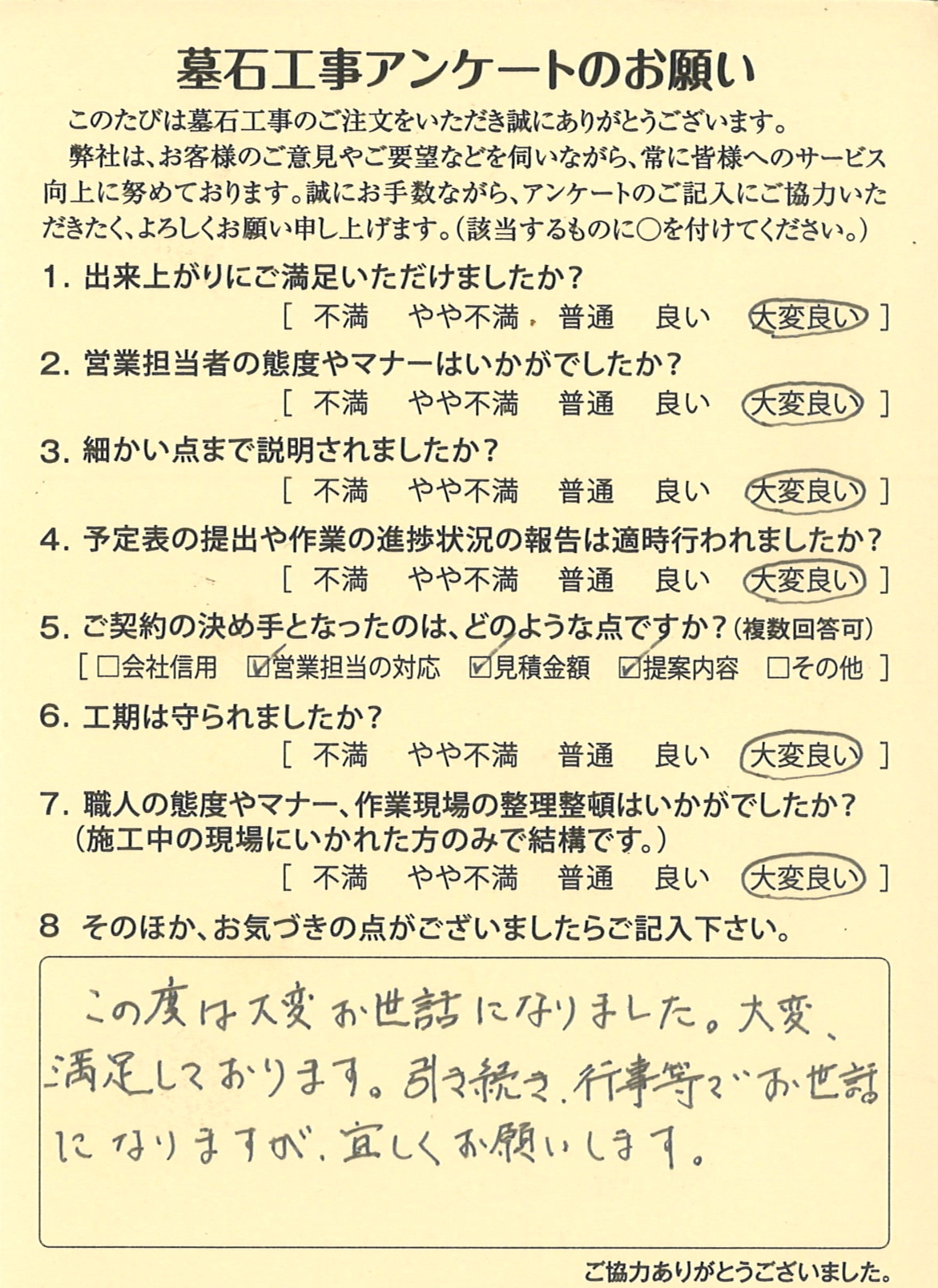 水戸市Y様からのアンケートをご紹介させて頂きます。