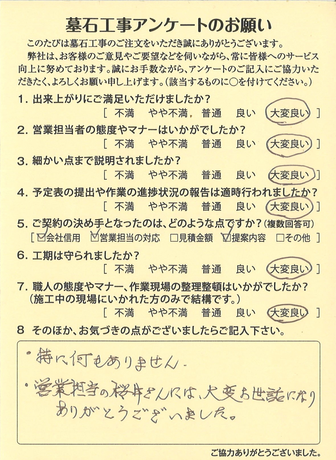・営業担当者の態度やマナーはいかがでしたか? 【大変良い(満足)】