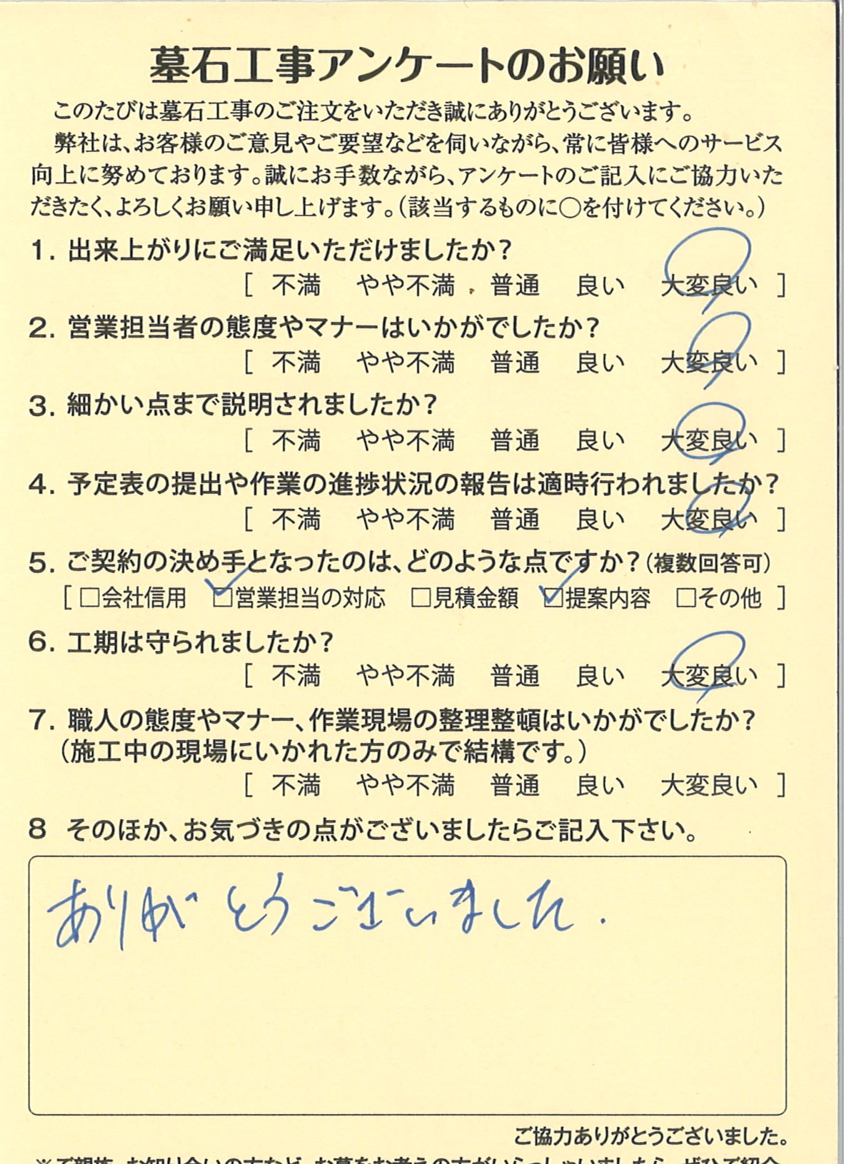 お客様アンケートをご紹介いたします。