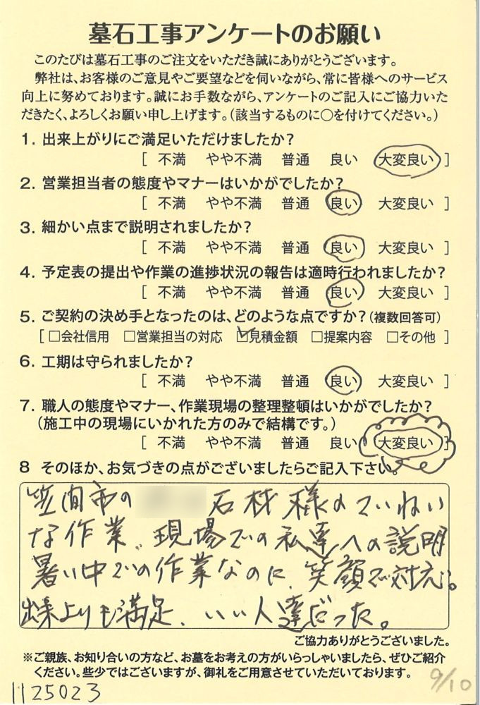 職人の態度やマナーは、作業現場の整理整頓はいかがでしたか【大変良い】