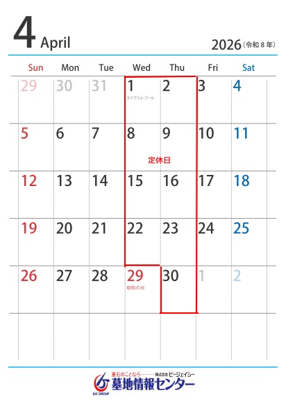 祝日にあたる4/29(水)および5/6(水)は通常通りの
