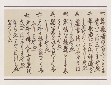 白虎隊も学んだ7つの条文から成り立っている「什の掟」(じゅうのおきて)